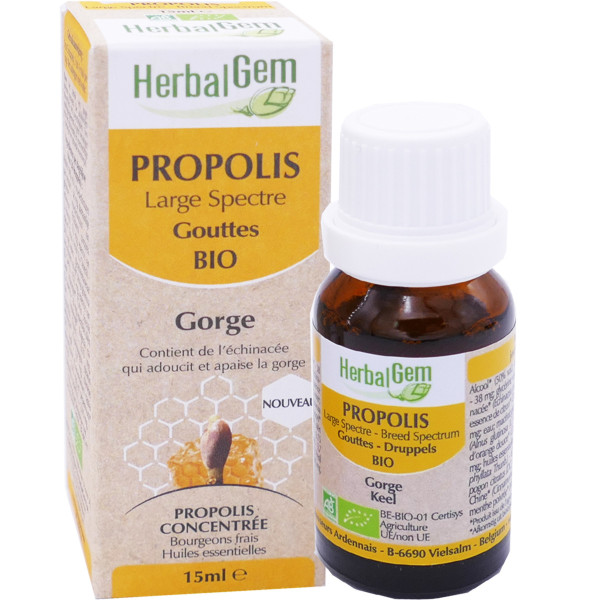 Gouttes Propolis BIO Large spectre GORGE d’HERBALGEM, le complément alimentaire à base de propolis et de bourgeons frais, sous forme de gouttes, dans votre parapharmacie en ligne pas chère.
