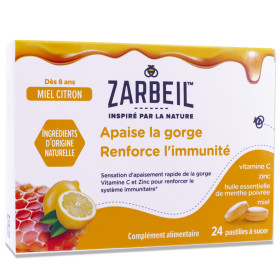 Le laboratoire ZARBEIL propose ces pastilles au goût miel citron, alliant le savoir-faire traditionnel aux bienfaits de la nature. La vitamine C et le zinc sont au cœur de cette formule, soutenant le fonctionnement normal du système immunitaire. Le zinc contribue également à participer à la protection des cellules contre le stress oxydatif. L'huile essentielle de menthe poivrée apporte une sensation de fraîcheur agréable. Le miel, ingrédient naturel reconnu, complète cette association pour une expérience gustative apaisante. Ces pastilles sont idéales pour ceux qui cherchent à soutenir leur bien-être quotidien de manière naturelle et efficace.