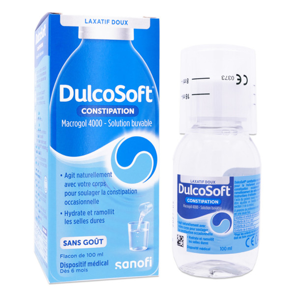 DULCOSOFT Constipation conditionné sous forme de solution buvable au gout neutre, est à base de macrogol 4000 traditionnellement reconnu pour favoriser le transit et restaurer le confort intestinal pour une élimination moins douloureuse des selles. Ce dispositif médical composé de macrogol 4000 qui est un laxatif osmotique aux propriétés digestives et régulatrices facilite l'évacuation des selles en augmentant la quantité d’eau dans le côlon pour ramollir et augmenter le volume des selles. Il rétablit le transit intestinal et soulage des inconforts. Sans arôme DULCOSOFT Constipation est toléré chez les femmes enceintes et allaitantes, les personnes diabétiques, et les personnes suivant un régime alimentaire pauvre en sodium. Sans lactose, sans gluten