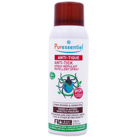 PURESSENTIEL SPRAY REPULSIF ANTI TIQUE 100ML est en vente en ligne sur le site de votre parapharmacie à prix pas cher, sous forme de spray répulsif pour la peau, destiné à toute la famille, adulte, enfant et bébé à partir de 6 mois, pour un usage en extérieur.