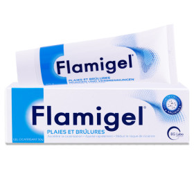 FLAMIGEL Plaies et brulures du laboratoire EG LABO est un dispositif médical spécialement conçu pour soulager et favoriser le processus de cicatrisation des brûlures superficielles, ainsi que toutes les blessures légères type coupures par la formation d’une couche protectrice à la surface de la plaie pour une réparation rapide. Ce gel est composé d’hydrocolloïde associés à de l’arginine. Non gras et non collant, ce gel va rétablir un taux d’hydratation normal et absorber l’excès de liquide pour une cicatrisation optimal de la plaie. Rapidement, la peau est apaisée par une agréable sensation de froid. FLAMIGEL peut être utilisé sur plaie sèche ou humide.