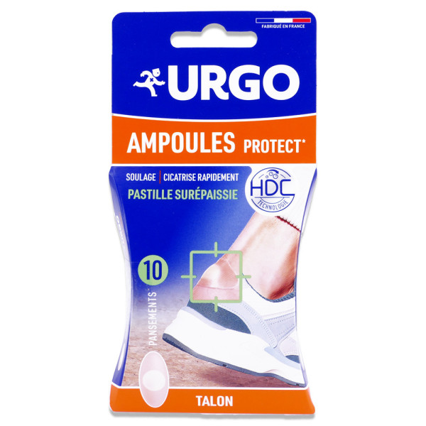 URGO PANSEMENT AMPOULES PROTECT TALON 10 PANSEMENTS est en vente en ligne sur le site de votre parapharmacie à prix pas cher, conçu pour protéger les talons des ampoules et offrir un confort optimal aux peaux sensibles.