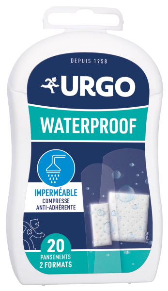 Depuis plus d’un siècle, les laboratoires URGO offrent des solutions santé aux patients et aux professionnels grâce une innovation constante et un savoir-faire technologique et scientifique de haut niveau. Le pansement waterproof, est un pansement adhésif qui s’adapte aux mouvements pour une protection efficace des petites plaies. Il est constitué d’une compresse centrale avec voile antiadhérent au contact avec la plaie sans adhérence pour favoriser la guérison de la plaie et la protéger des bactéries. Micro-aéré et enduit d’un adhésif hypoallergénique il respecte la peau et la laisse respirer. Résistant et extensible il suit les mouvements du corps et résiste à l'eau (baignade, douche,...).