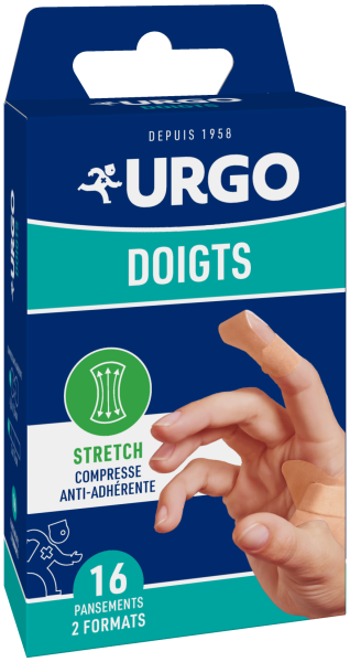 Les Pansements Spécial Doigts des laboratoires URGO, très résistants à l’eau (baignade, douche,…), sont des pansements adhésifs sous 2 formats différents pour les plaies entre les doigts de la main (longs) et pour la pulpe des doigts (papillon), qui s’adaptent aux mouvements de la main comme une seconde peau pour une protection efficace des petites plaies par sa grande extensibilité. Ils sont constitués d’une compresse anti-adhérente pour protéger la peau des bactéries sans coller à la plaie, micro-aérée pour laisser respirer la peau, et hypoallergénique.
