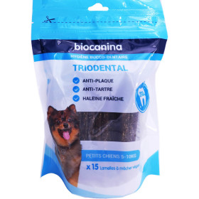 TRIODENTAL pas cher de BIOCANINA une croustillante friandise végétale pour optimiser l’hygiène bucco-dentaire des chiens de 5 à 10kg, dans votre parapharmacie en ligne à prix pas cher.