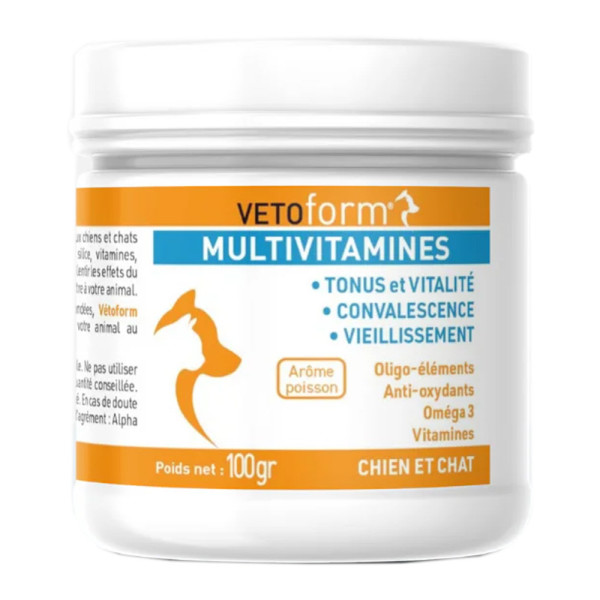 VETOFORM MULTIVITAMINES CHIEN ET CHAT 100G est disponible en vente en ligne à prix pas cher sur Beautyshop.