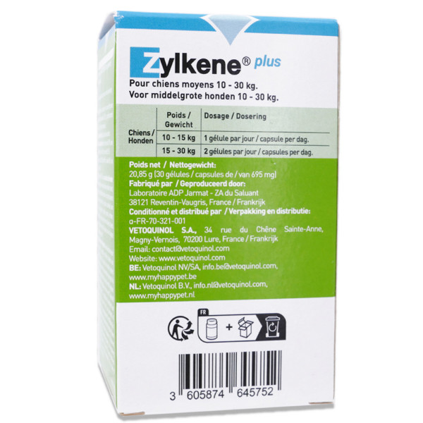 ZYLKENE PLUS 225MG CHIEN 10-30KG 30 GELULES est disponible en vente en ligne à prix pas cher sur Beautyshop.