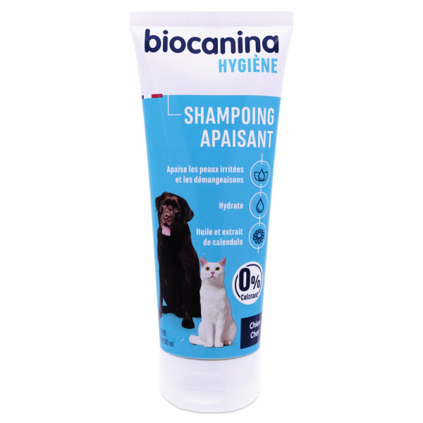 Le shampooing Apaisant de BIOCANINA à prix pas cher dans votre parapharmacie en ligne, un shampooing douceur qui nettoie les poils des chiens et des chats à la peau sensible et irritée avec démangeaisons tout en douceur.