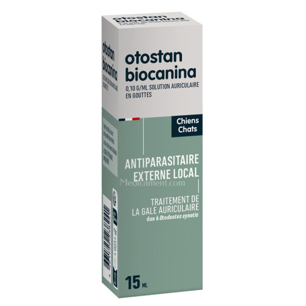 Otostan est une solution auriculaire pour les chiens et les chats qui traite des gales.