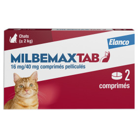 ELANCO MILBEMAXTAB CHATS > 2KG 2 COMPRIMES est en vente en ligne sur le site de votre parapharmacie à prix pas cher pour le soin des chats pesant plus de 2 kg.