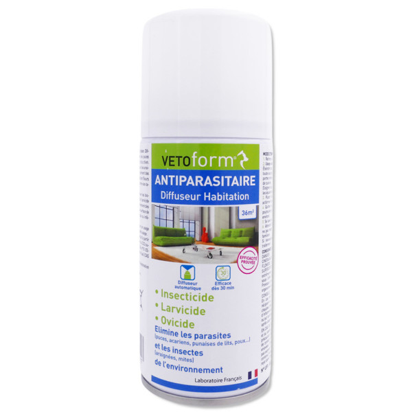 VETOFORM ANTIPARASITAIRE DIFFUSEUR HABITATION 150ML est en vente en ligne sur le site de votre parapharmacie à prix pas cher, conçu pour protéger votre environnement des parasites grâce à son action insecticide.
