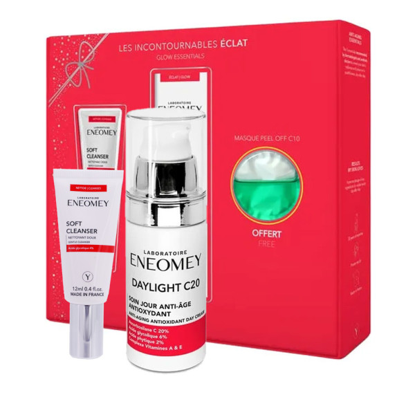 La marque ENEOMEY est reconnue pour ses formulations innovantes et efficaces. Ce coffret contient plusieurs produits phares, chacun conçu pour sublimer votre peau. Le coffret inclut le 'Soft Cleanser', un nettoyant doux qui élimine les impuretés tout en préservant l'hydratation naturelle de la peau grâce à ses agents nettoyants doux. Le 'Daylight C20' est un soin de jour enrichi en vitamine C, connu pour ses propriétés antioxydantes qui aident à protéger la peau des agressions extérieures et à révéler l'éclat du teint. Le 'Masque Peel Off C10' offre une expérience purifiante en douceur, resserrant les pores et affinant le grain de peau grâce à sa formule innovante. Chaque produit du coffret est conçu pour s'intégrer parfaitement dans votre routine beauté quotidienne, vous offrant une peau visiblement plus lumineuse et éclatante.