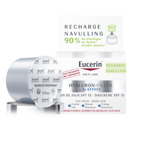 Hyaluron-Filler 3X Effect soin de jour SPF 15 d'EUCERIN dans votre parapharmacie en ligne pas cher, l’expertise « cosméto-médicale » pour ce soin anti-âge destiné à combler les rides des peaux sèches