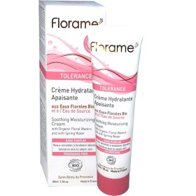 Les produits de la gamme Tolérance de FLORAME sont composés d’eaux florales, d’eau de source de Haute-Provence et d’un concentré breveté de 7 actifs pour répondre aux besoins des peaux sensibles avec rougeurs à tendance atopique. Respectueux de l’équilibre de la peau, les produits sont exempts de parfum pour limiter les risques d’allergies. La Crème Hydratante apaisante Tolérance légère vite absorbée qui ne laisse pas de film gras, est un soin hautement concentré en huiles végétales bio et complexe de sucres pour préserver l’équilibre hydrique de la peau et garantir son confort. Sa formule est enrichie d’huiles végétale biologique d’amande douce aux vertus hydratantes et adoucissantes pour une hydratation profonde et continue et un apaisement immédiat de la peau. Instantanément, la peau moins réactive retrouve son confort. Sans parfum testée sous contrôle dermatologique.