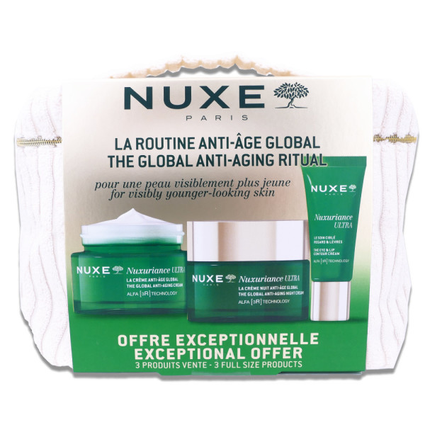 NUXE ROUTINE ANTI AGE GLOBAL TROUSSE + 3 SOINS est en vente en ligne sur le site de votre parapharmacie à prix pas cher, offrant une solution anti-âge complète pour tous types de peau.