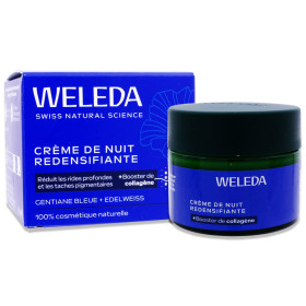 La crème de nuit redensifiante Weleda Bio, en vente en ligne sur le site de votre parapharmacie à prix pas cher, est le secret pour une peau régénérée et éclatante de jeunesse, au réveil.