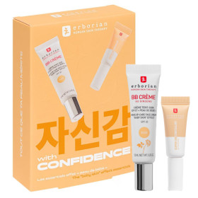 Le coffret est proposé par la marque Erborian, reconnue pour ses produits innovants alliant la tradition coréenne aux technologies modernes. Ce coffret contient une BB Crème Nude, à la texture légère, qui unifie le teint et masque les imperfections grâce à ses pigments encapsulés. Il inclut également un Super BB Concealer Nude, conçu pour camoufler les cernes et petites imperfections, enrichi en ginseng pour ses propriétés tonifiantes et en niacinamide pour son rôle apaisant.