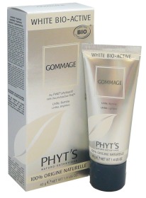 PHYT’S est une marque experte en cosmétique qui développe depuis plus de 40 ans des soins formulés à base d’actifs naturels pour allier santé, beauté et proposer une réponse adaptée à tous les désordres cutanées.Labellisés Cosmébio, les produits Made In France sont recyclables, biodégradable ou revalorisables énergétiquement et leurs papiers issus de forêts gérées prendront soin de la planète. La gamme White Bio-Active est composée de produits formulés avec un ingrédient aux vertus éclaircissantes : le complexe PWE qui est un complexe riche en extraits de plantes bio et d’huiles essentielles bio, afin d’offrir le meilleur de la nature aux peaux ternes avec des taches pigmentaires, et réveiller leur éclat. Le gommage White Bio-Active est un soin qui redonne de l’éclat et uniformise le teint de la peau du visage. Il aide à lutter contre les taches en éclaircissant le teint et en ciblant la production de la mélanine afin de lutter contre l’apparition de nouvelles taches pigmentaires, grâce au complexe PWE composé d’extraits végétaux bio (busserole, réglisse) et d’huiles essentielles bio (achillée millefeuille, persil, carotte, céléri, basilic, bois de rose, wintergreen), ainsi que de vitamine E naturelle. L’acérola Bio qui est très riche en vitamine C va participer à l’exfoliation et l’élimination des impuretés et toxines pour redonner de la clarté au visage et affiner le grain de peau. Dès la première utilisation, le visage retrouve son éclat, le teint est unifié et éclatant pour un visage visiblement plus lumineux, la peau est nette et les irrigularités estompées. Sans conservateur. Sans paraben. Sans phenoxyethanol. Sans peg. Sans ogm. Sans colorant de synthèse. Sans silicone. Sans bisphénol A