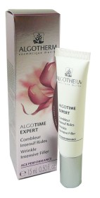 Les produits ALGOTIME EXPERT à base d’extraits marins sont des soins anti-âge révélateur d’éclat et booster de jeunesse pour les peaux marquées par les premiers signes de l’âge. Le soin combleur intensif rides d’ALGOTHERM à la texture léger et légèrement rosé pour s’adapter à toutes les carnations de peaux, à base de sphères de comblement marines et d’acide hyaluronique va estomper les rides déjà présentes en les comblant en profondeur, et lisser la peau. Au contact de l’eau présent naturellement dans l’épiderme, l’acide hyaluronique et les sphères de comblement vont gonfler et ainsi combler les rides même les plus profondes pour diminuer leur apparence. Le visage retrouvera son éclat et sa jeunesse, les signes de l’âge effacés pour un teint lumineux dès la première utilisation et pour longtemps. Sans paraben sans phénoxyéthanol Testé sous contrôle dermatologique et ophtalmologique Hypoallergénique