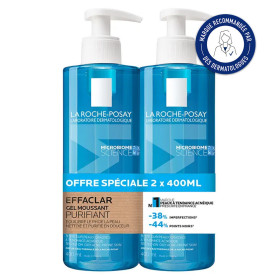 LA ROCHE POSAY EFFACLAR GEL MOUSSANT PURIFIANT 2 X 400ML est en vente en ligne sur le site de votre parapharmacie à prix pas cher, idéal pour nettoyer en douceur la peau mixte ou grasse du visage.