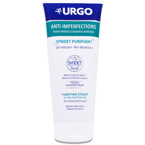 URGO SYNDET PURIFIANT GEL NETTOYANT 200ML est en vente en ligne sur le site de votre parapharmacie à prix pas cher, conçu pour nettoyer délicatement les peaux à imperfections ou à tendance acnéique du visage des adolescents et adultes dès 12 ans.