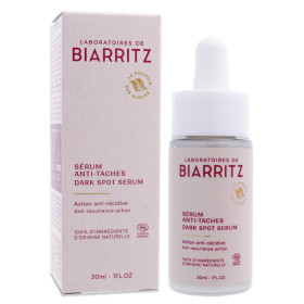 BIARRITZ SERUM ANTI-TACHES 30ML est en vente en ligne sur le site de votre parapharmacie à prix pas cher, offrant une solution ciblée pour atténuer l'apparence des taches pigmentaires et unifier le teint.