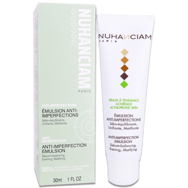 NUHANCIAM ÉMULSION ANTI IMPERFECTIONS 30ML : une solution efficace pour lutter contre les imperfections, en vente en ligne sur le site de votre parapharmacie à prix pas cher. Découvrez une peau plus nette et un teint unifié grâce à cette émulsion innovante.