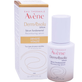 DermAbsolu est une gamme experte pour les peaux matures et sensibles marquées par l’âge qui redonne aux visages de la densité et de la vitalité par sa haute technologie concentrée en actifs brevetés anti-âge et l'Eau thermale d'Avène. Le Sérum fondamental DermAbsolu très concentré à la texture sérum-in-oil pour plus de confort, va agir sur les signes de l’âge de la peau et sur l’éclat du teint. Composé de Glycoléol qui est un précurseur de lipides cutanés essentiels, la peau sera nourrie, assouplie, réconfortée, pour une peau qui retrouve sa luminosité, et le teint sera uniformisé pour qu’il retrouve beauté et lumière. Les Polyphénols de vanille (booster d’acide hyaluronique) antioxydants et rendisifiants, le Systénol (restructurant cellulaire) vont lutter contre le relâchement cutané en redonnant matière et densité à la peau, redessiné l’ovale du visage en renforçant l’armature des cellules et repositionner les volumes du visage. L’Eau thermale d’Avène anti irritante, apaisera la peau des inconforts et irritations. Jour après jour, la peau retrouve souplesse et douceur, le teint est éclatant et unifié, le visage redessiné et plus ferme.