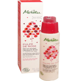 Le sérum repulpant éclat 1ers signes de l’âge Pulpe de Rose de MELVITA, pas cher l’eau florale de rose pour préserver la peau des signes de l’âge dans votre parapharmacie en ligne à prix pas cher, et redonner de l’éclat au teint terne.