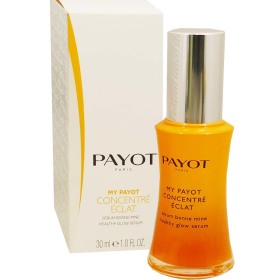 Les produits MY PAYOT sont composés de soins réparateurs, protecteur et révélateurs de lumière pour redonner aux peaux ternes et fatiguées une luminosité intense pendant toute la journée en leur procurant hydratation, douceur et confort. Le Concentré éclat My Payot légèrement abricoté fluide qui fond sur la peau dès l’application, est un sérum à base de baies de goji et de bifidus actif (contenant des micro-organismes), qui renforcent les défenses naturelles de la peau et son système immunitaire pour mieux lutter contre les agressions extérieures qui ternissent le teint, tout en redonnant de l'énergie aux cellules cutanées pour un effet renforcé. Les baies d'acaï (riche en oligo-éléments et polyphénols) relancent le mécanisme de la circulation sanguine pour retrouver une peau éclatante. La présence de vitamine C, va protéger la peau des agressions quotidiennes afin de lutter contre le teint terne et fatigué. Les extraits de carotte et potiron légèrement orangés donneront au visage un effet bonne mine. Jour après jour, le visage retrouve tout son éclat et pour toute la journée