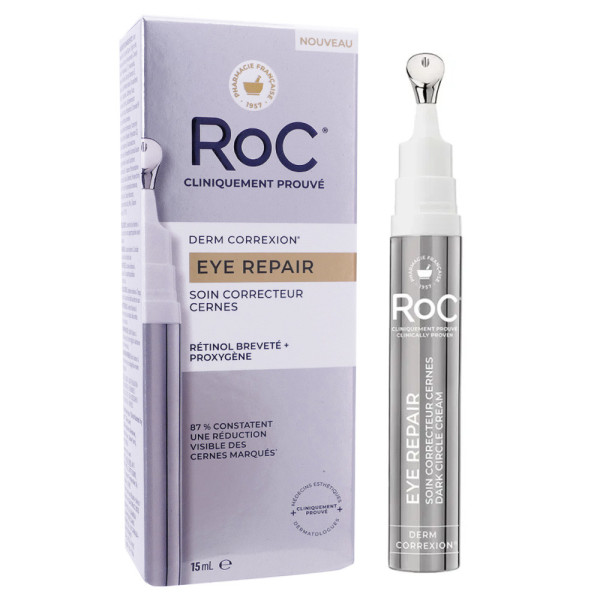 ROC DERM CORRECTION EYE REPAIR 15ML est en vente en ligne sur le site de votre parapharmacie à prix pas cher, conçu pour réduire l'apparence des rides et des cernes autour des yeux, idéal pour tous types de peau.