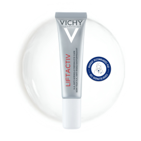 LIFTACTIV Yeux de Vichy est le soin ultime pour les femmes qui souhaitent à la fois lutter contre les rides et retrouver un regard éclatant et une peau lisse instantanément et pour longtemps. Ce soin est formulé à base de la technologie Derme-Source qui est un puissant anti-âge pour agir sur le contour des yeux, les rides et les paupières en retendant et lissant la peau et en repulpant les rides. Il comble les rides même profondes tout en lissant et raffermissant la peau instantanément du contour de l’œil et des paupières. La Rhamnose qui est un sucre végétal 100% naturel va avoir des actions anti-âge pour stimuler le Derme Source en comblant les rides et redonnant de la fermeté, tout en apaisant la peau. La caféine et l’Escine qui est un extrait de marron d’Inde vont avoir un effet anti-fatigue pour décongestionner les poches et estomper les cernes ne relançant la microcirulation cutanée et en drainant l’eau en excès. Enrichi en eau thermale de Vichy elle apaise et fortifie. Vous retrouvez une peau lisse et ferme dès la première application jusqu'au soir pour un contour de l’œil rajeunit. Le contour de l’œil sera lifté pour un regard qui retrouvera toute sa jeunesse. Hypoallergénique, sans parfum, testé sur yeux sensibles sous contrôle dermatologique et ophtalmologique