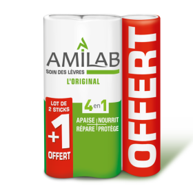 AMILAB SOIN DES LÈVRES L'ORIGINAL 4 EN 1 2 STICKS + 1 OFFERT est disponible en vente en ligne sur le site de votre parapharmacie à prix pas cher.