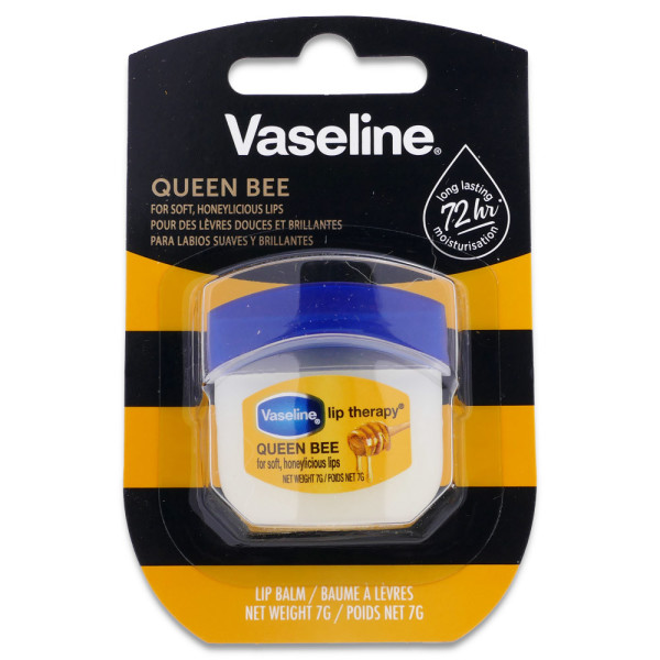 Produit par la marque Vaseline, ce baume à lèvres se présente sous une texture douce et légère, idéale pour une application facile et agréable. Sa formule contient de la gelée de pétrole Vaseline® pure, reconnue pour ses propriétés occlusives qui aident à retenir l'humidité, offrant ainsi une protection durable contre le dessèchement. Non collante et non grasse, cette gelée laisse les lèvres douces et souples sans effet gras désagréable. Le baume Queen Bee se distingue par son parfum gourmand, ajoutant une touche de plaisir à chaque utilisation.