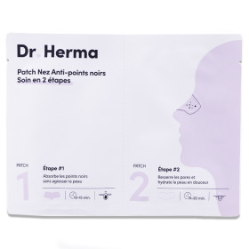 Fabriqué par Dr Herma, ce produit se présente sous forme de patchs avec une texture adhésive pour un soin en deux étapes. Le premier patch favorise l'absorption des points noirs grâce à une technologie liposomale brevetée, à appliquer sur la zone du nez pendant 10 à 15 minutes. Le second patch aide à resserrer visiblement les pores et hydrate la peau, enrichi en Châtaignier du Japon, Badiane chinoise et Provitamine B5, connus pour leurs propriétés cosmétiques hydratantes et apaisantes.