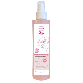 B com Bio propose une texture légère en spray, pratique pour une application rapide à tout moment de la journée. Sa formule contient de l’acide hyaluronique, reconnu en cosmétique pour aider à maintenir l’hydratation de la peau, de l’eau florale de rose de Damas, appréciée pour son effet rafraîchissant et son parfum délicat, ainsi que de l’eau cellulaire d’orge, utilisée pour contribuer au confort cutané et à la sensation de fraîcheur. Cette brume laisse la peau souple, douce et agréablement enveloppée.