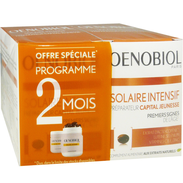 OENOBIOL SOLAIRE INTENSIF Préparateur capital jeunesse du laboratoire OENOBIOL à prix pas cher, un complément alimentaire aux extraits naturels, en vente dans votre parapharmacie en ligne pas chère.