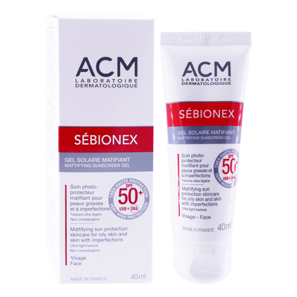 ACM Sebionex Gel Solaire Matifiant SPF50+ 40ml est un produit en vente en ligne sur le site de votre parapharmacie à prix pas cher. Ce gel solaire matifiant, développé par le laboratoire ACM, est spécialement conçu pour les peaux mixtes à grasses à tendance acnéique y compris sous traitements anti-acnéiques.