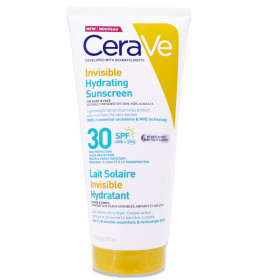 CERAVE LAIT SOLAIRE INVISIBLE SPF 30 177ML pour visage et corps est en vente en ligne sur le site de votre parapharmacie à prix pas cher, offrant une protection solaire adaptée à tous les types de peau.