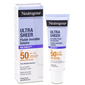 NEUTROGENA SOLAIRE SPF50 FLUIDE INVISIBLE AGE pour le visage 50ML est en vente en ligne sur le site de votre parapharmacie à prix pas cher, offrant une protection solaire haute performance pour les peaux matures.