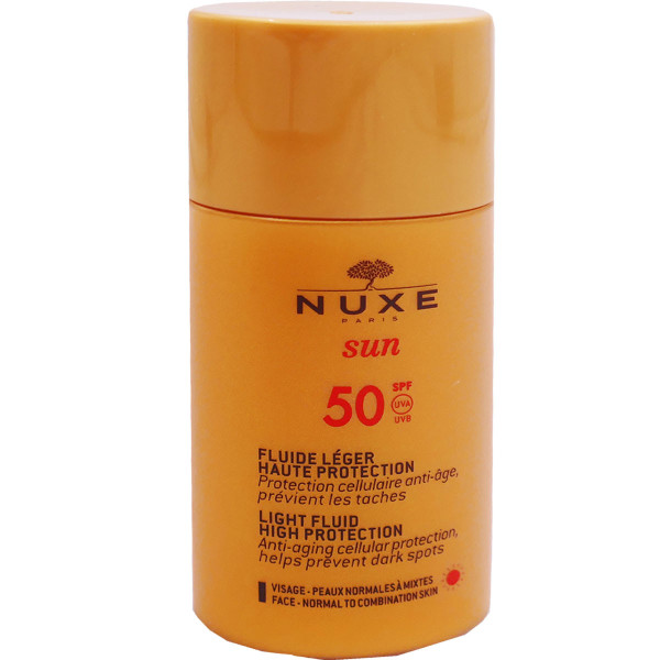 Le Fluide Léger haute protection SPF 50 de NUXE Sun dans votre parapharmacie en ligne pas cher, un soin à la fragrance mythique NUXE aux pouvoirs protecteurs, ultra-hydratants et sublimateurs pour prendre soin de sa peau pendant les bains de soleil