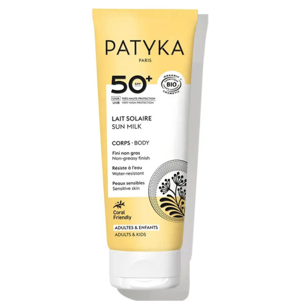 PATYKA LAIT SOLAIRE CORPS SPF50+ BIO 100ML est en vente en ligne sur le site de votre parapharmacie à prix pas cher, offrant une protection solaire élevée pour tous types de peau.