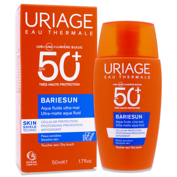 URIAGE BARIESUN AQUA SPF50+ FLDE ULT-MAT 50ML pour le visage et le cou est en vente en ligne sur le site de votre parapharmacie à prix pas cher, offrant une protection solaire haute performance pour les peaux sensibles du visage et du cou,