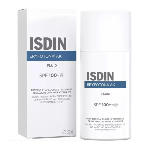 ISDIN ERYFOTONA AK FLUID 100+ SPF 50 ml est en vente en ligne sur le site de votre parapharmacie à prix pas cher, offrant une protection solaire avancée pour la prévention et le soin adjuvant des peaux sujettes à la kératose actinique et à d'autres formes de cancer cutané non mélanome.
